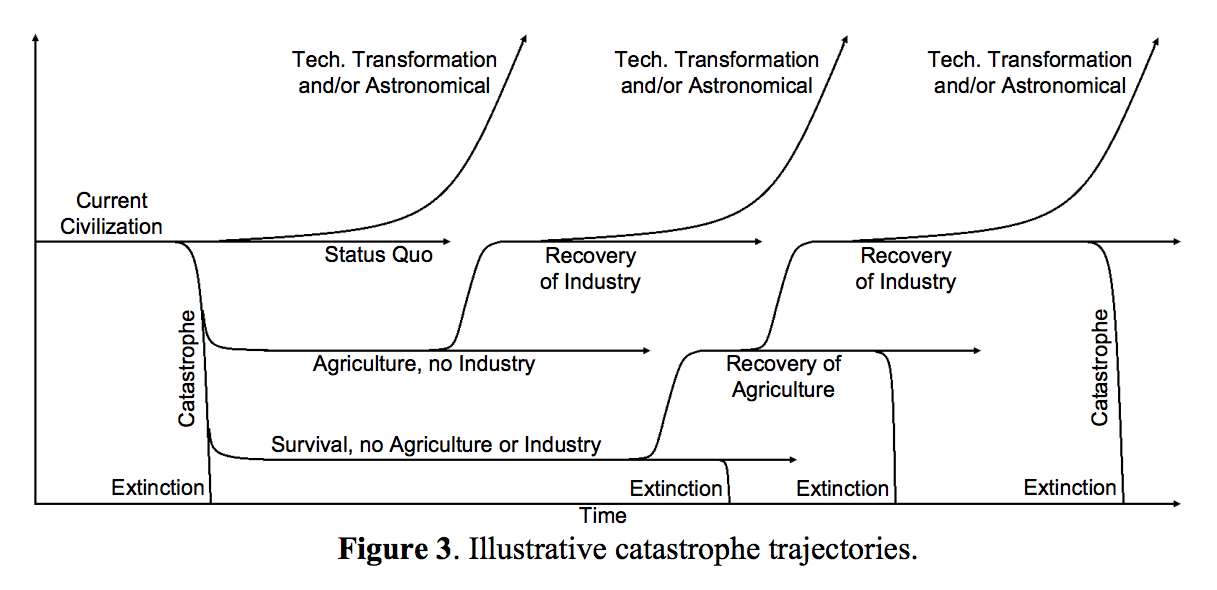 I found a paper recently by a consortium of economists (including Robin Hanson) that takes a long view on where human civilization is going. It contains this amazing chart: