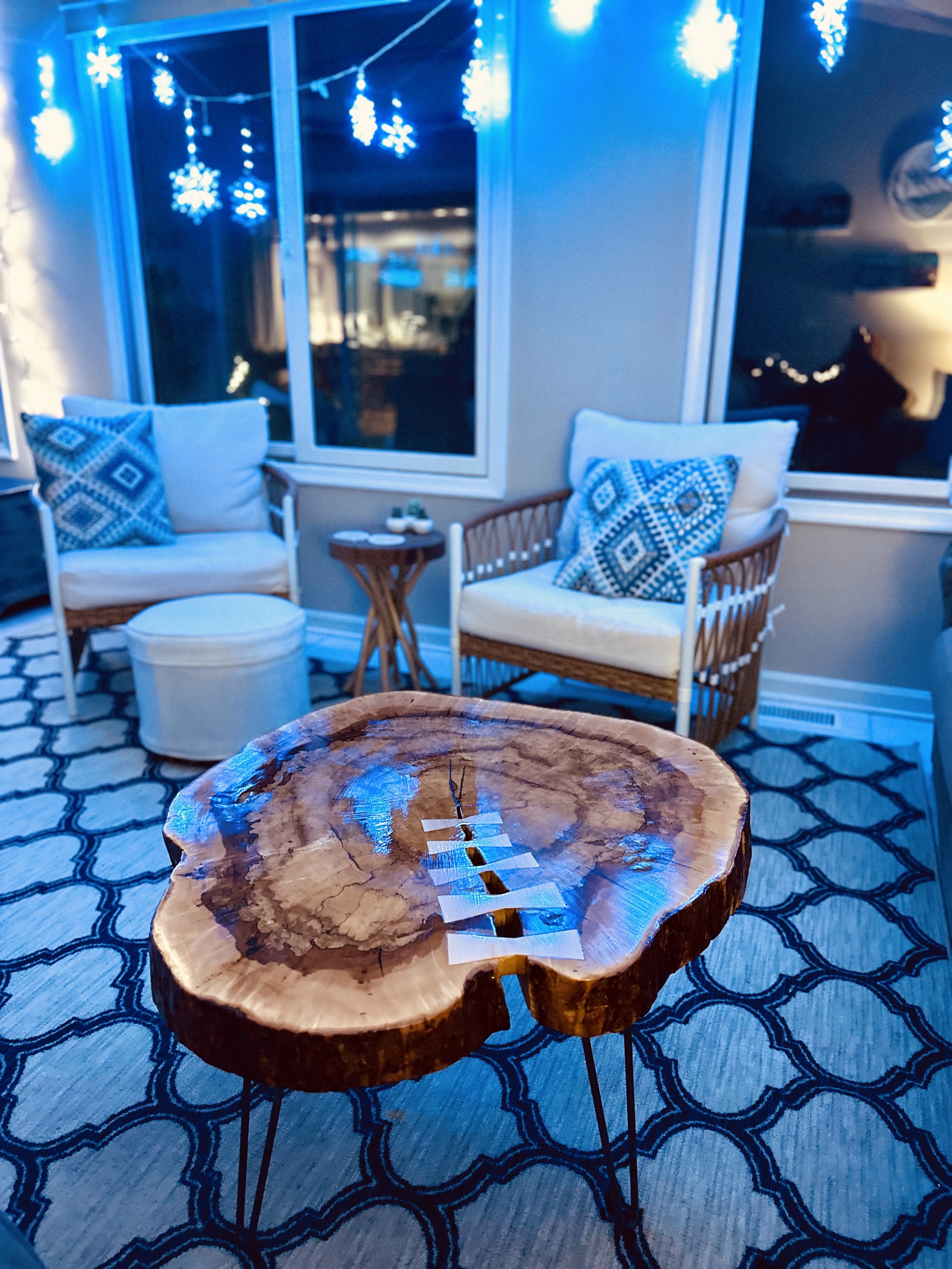 And then there’s this zippered up maple slab coffee table! This was originally just the maple round. I thought I was all done with it - 6 coats of poly and all - put it in place in our house and the very next day the wood cracked from moisture movement! Back to the workship for some bowtie work, but the final result is cooler than just the round by itself. It has 7 coats of poly now, just because.